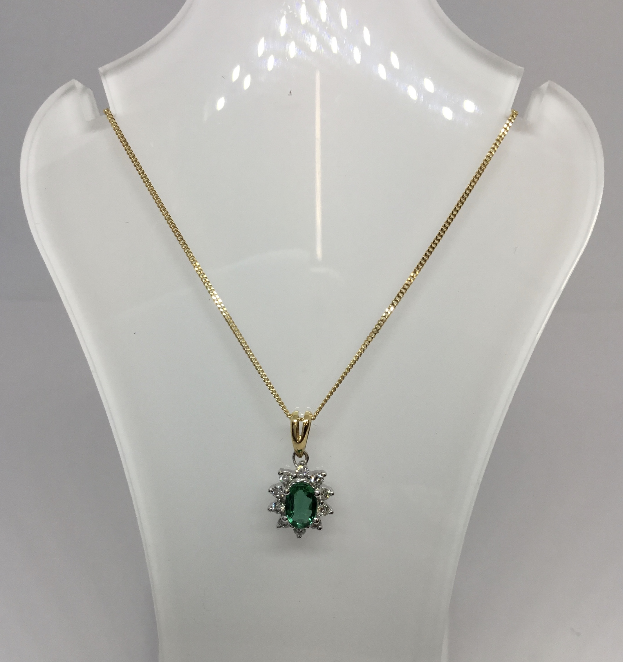 18ct Emerald & Diamond Claw Set Pendant