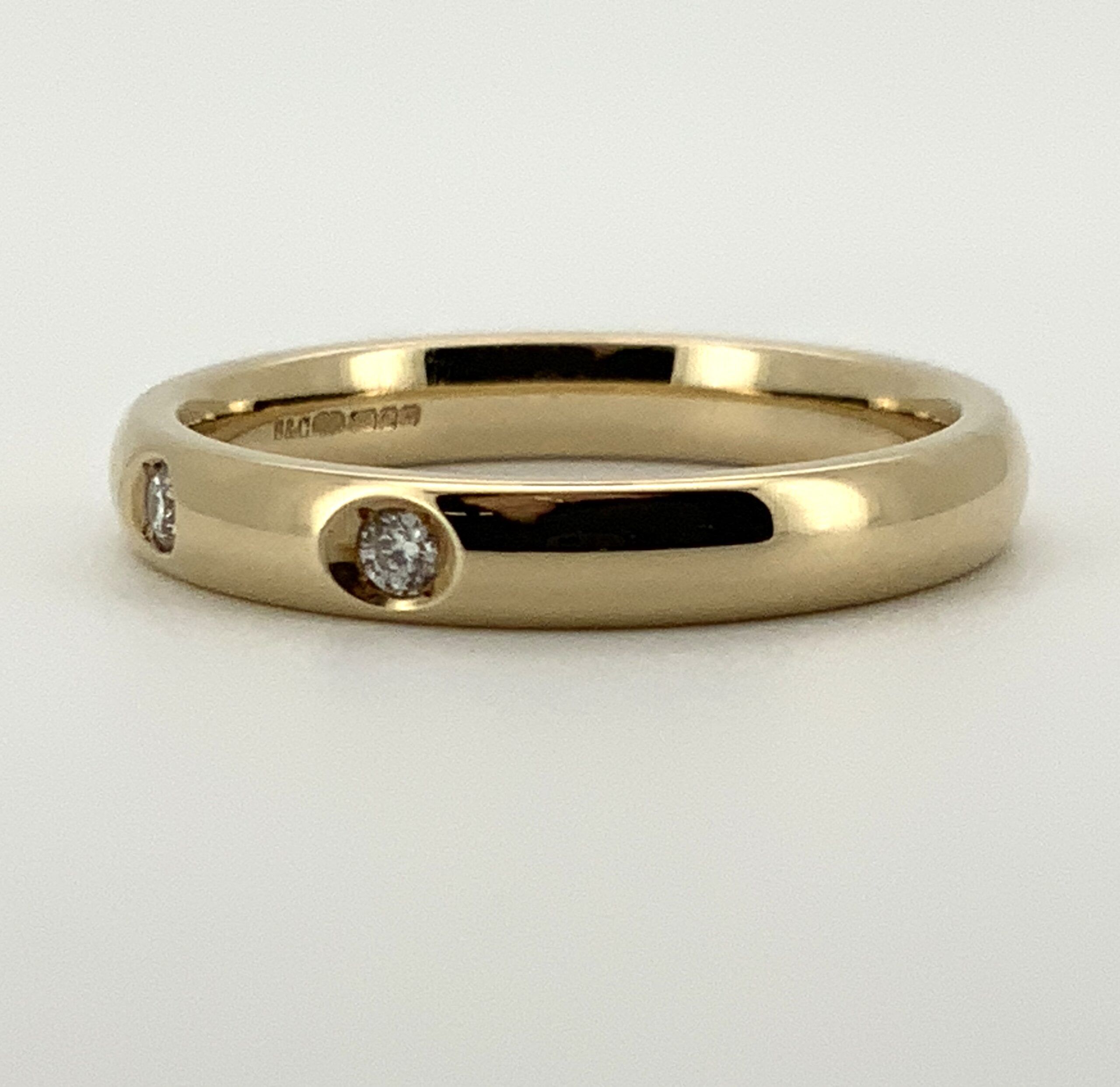 9ct Yellow Gold 3 x Diamond 3mm Wedding Band